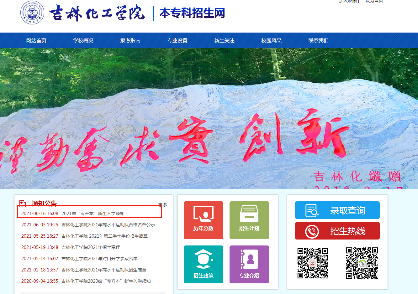 吉林化工学院本专科招生网(专升本公告通知发布)