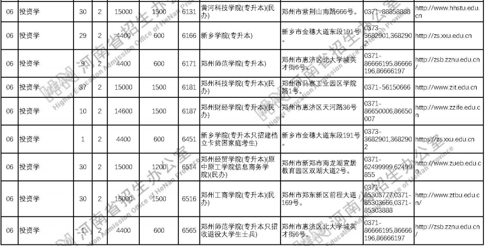 河南专升本2021年投资学专业各院校招生计划