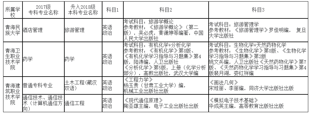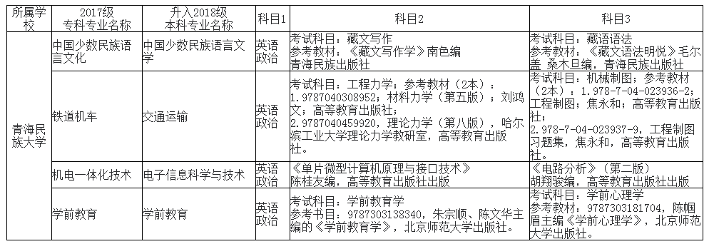 2020年青海民族大学专升本考试科目及参考教材