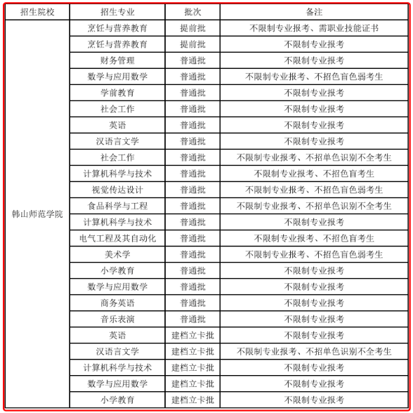 体育教学、小学教育、学前教育、汉语言文学、英语、数学与应用数学、物理学、地理信息科学、生物科学、环境工程、计算机科学与技术、土木工程、园林、公共事业管理、财务管理、美术学。