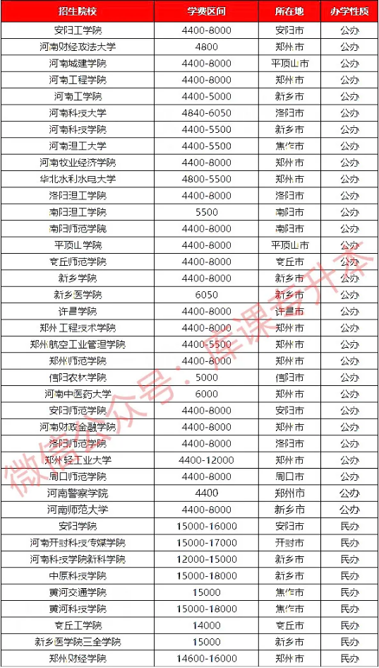 河南专升本48所院校学费盘点! 艺考 • 2023-06-19 15:36:00 • 专栏 据统计2021年河南专升本招生院校共计48所,其中18所为民办院校,30所为公办院校。今天库课李老师给考生汇总各所院校学费,请考生认真查看。 2021年河南专升本招生院校办学性质 2021年河南专升本招生院校学费盘点 注:以上数据仅供参考,实际请以高校公布为准! 本文由用户:艺考 投稿分享,如有侵权请联系我们(点击这里联系)处理,若转载,请注明出处:http://xueli.yktime.cn/952.html 赞 (0) 艺考 0 生成海报 相关推荐 2018年洛阳理工学院招生章程(含艺术类) 第一章 总则 第一条 为了保证洛阳理工学院高考招生工作的顺利进行,切实维护学校和考生的合法权益,根据《中华人民共和国教育法》、《中华人民共和国高等教育法》等相关法律和… 专栏 2023-06-19 00 2022年杭州市开元商贸职业学校有哪些专业 为您整理了2022年杭州市开元商贸职业学校有6个热门专业,专业数据来源网络供参考,专业介绍、收费标准请杭州市开元商贸职业学校官网公布为准。 杭州市开元商贸职业学校开设的专业: 1、… 专栏 2023-06-19 00 五道关决胜2011年美术高考 一、心理关。因为文化成绩不好,很少听到过别人的表扬,而在某一次作画中,有旁边的人夸其画得好,他们从中获得极大的自信,从而一次比一次画得好,最后… 专栏 2023-06-19 00 2021年上海健康医学院专升本录取学生上传毕业证书的通知 上海健康医学院最近发布了要求2021年专升本录取学生上传毕业证书的通知,上传毕业证书的截止时间为7月23日,2021年上海健康医学院专升本录取学生上传毕业证书的通知内容如下。 … 专栏 2023-06-19 00 2022年崇仁县职业教育中心有哪些专业 为您整理了2022年崇仁县职业教育中心有7个热门专业,专业数据来源网络供参考,专业介绍、收费标准请崇仁县职业教育中心官网公布为准。 崇仁县职业教育中心开设的专业: 1、电子商务 2… 专栏 2023-06-19 00 海洋科学专业学什么,好学吗? 主要课程:高等数学、大学物理及实验、大学化学及实验、海洋科学导论、生物海洋学、海洋地质学、海洋调查与观测技术(含出海实习)等。就业前景:国家对. 挺好你想学是吧挺好挺好我知道青岛的… 专栏 2023-06-19 00 2018年中国美术学院校考合格名单 现将2018年中国美术学院本科招生专业考试合格考生名单进行公示。公示期:2018年4月28日―5月4日,共七天。如有异议,请在公示期内以书面的… 专栏 2023-06-19 00 教育部:艺术学科评估结果排行榜 12月28日,教育部学位与研究生教育发展中心公布全国第四轮学科评估结果。第四轮评估于2016年在95个一级学科范围内开展(不含军事学门类等16… 专栏 2023-06-19 00 发表回复 您的邮箱地址不会被公开。 必填项已用 * 标注*昵称: *邮箱: 网址: 记住昵称、邮箱和网址,下次评论免输入 提交